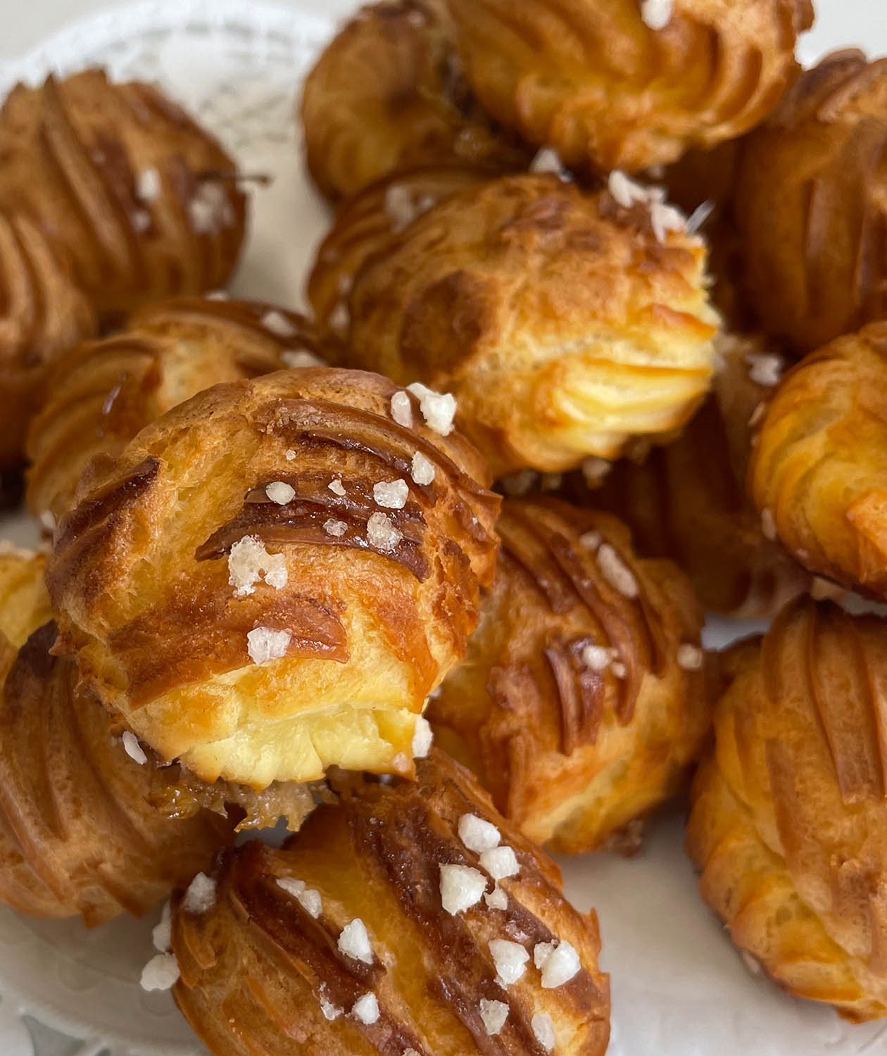 Die kleinen, feinen Chouquettes mit der typischen Verzierung aus Hagelzucker sind ein echtes Aushängeschild der französischen Backkultur. Jemand hat mal sehr poetisch den Moment beschrieben, wenn man in sie hineinbeisst: es sei, als würde man eine Wolke essen …