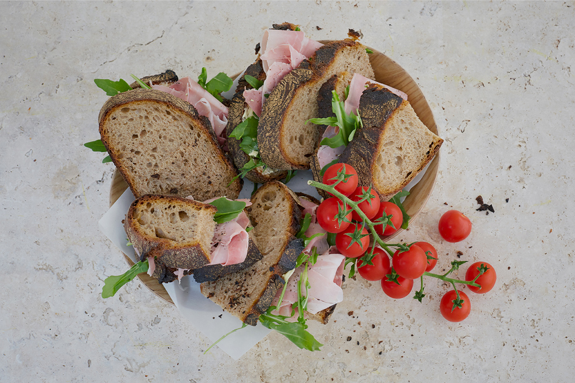 Knusprige Kruste, saftige Krume, kräftiges Aroma. Das Grand Rustique ist ein Roggensauerteigbrot genau nach unserem Geschmack! Die Liste der Zutaten ist – typisch für Dompierre – sehr kurz: Eine Mischung aus T80-Steinmühlenmehl und T65-Weizenmehl, etwas Roggensauer, Wasser und Salz. C’est tout.